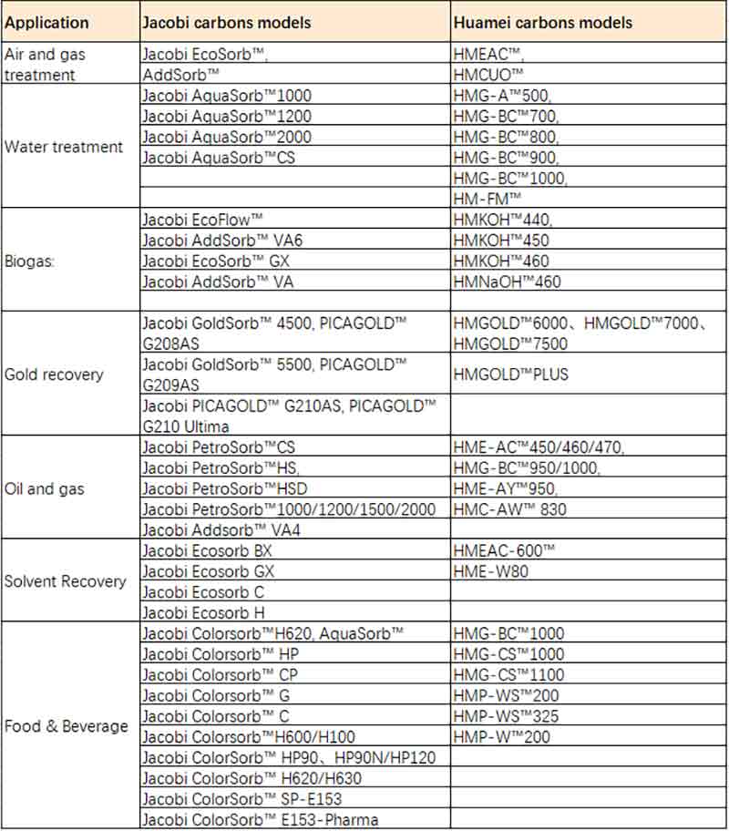 Jacobi Activated Carbon VS Huamei Activated Carbon